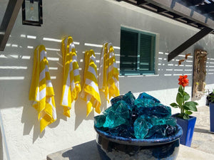 Our heavy 420 GSM yarn dyed cabana stripe towels are the perfect choice for all your water-related ventures.
