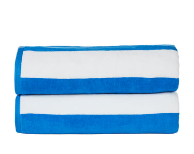 Two extra-large pool & beach towel set measures 34” x 64" each, much larger than the standard 30" x 60" beach towel.