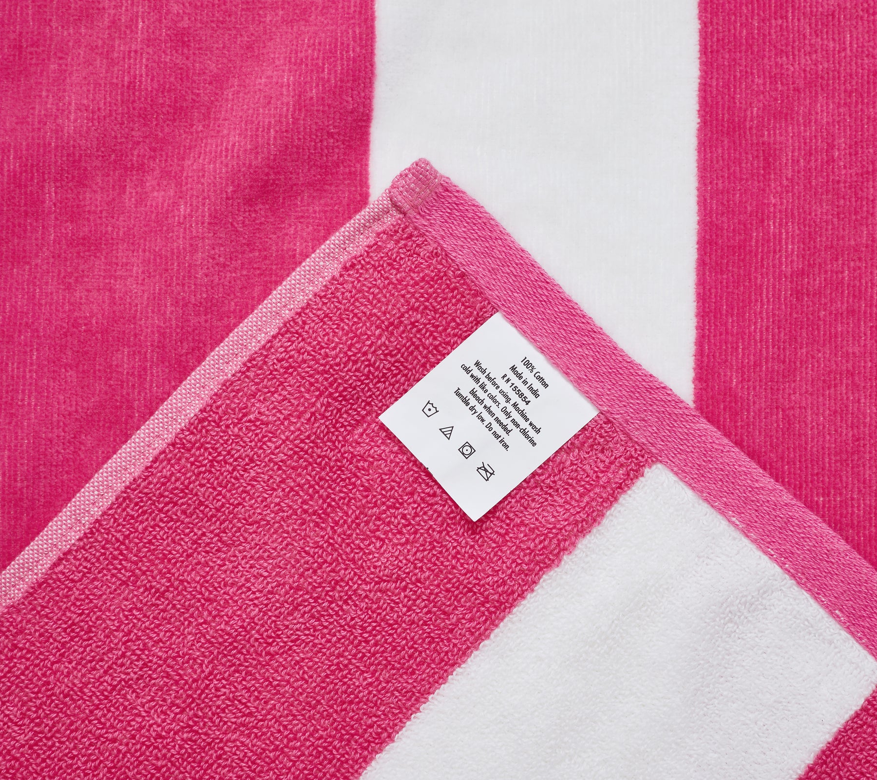 These Cabana Stripe velour towels are perfect for your next trip to the beach or pool. In addition to their elegant and eye-catching colors, these towels are made of incredibly soft and absorbent cotton and velour, which adds a soft and plush feeling to your skin. Our Cabana Stripe line guarantees durability through its double-stitched hems and fade-resistant dyes that keep color for 50 washes. These towels are the perfect choice for all your water-related ventures.