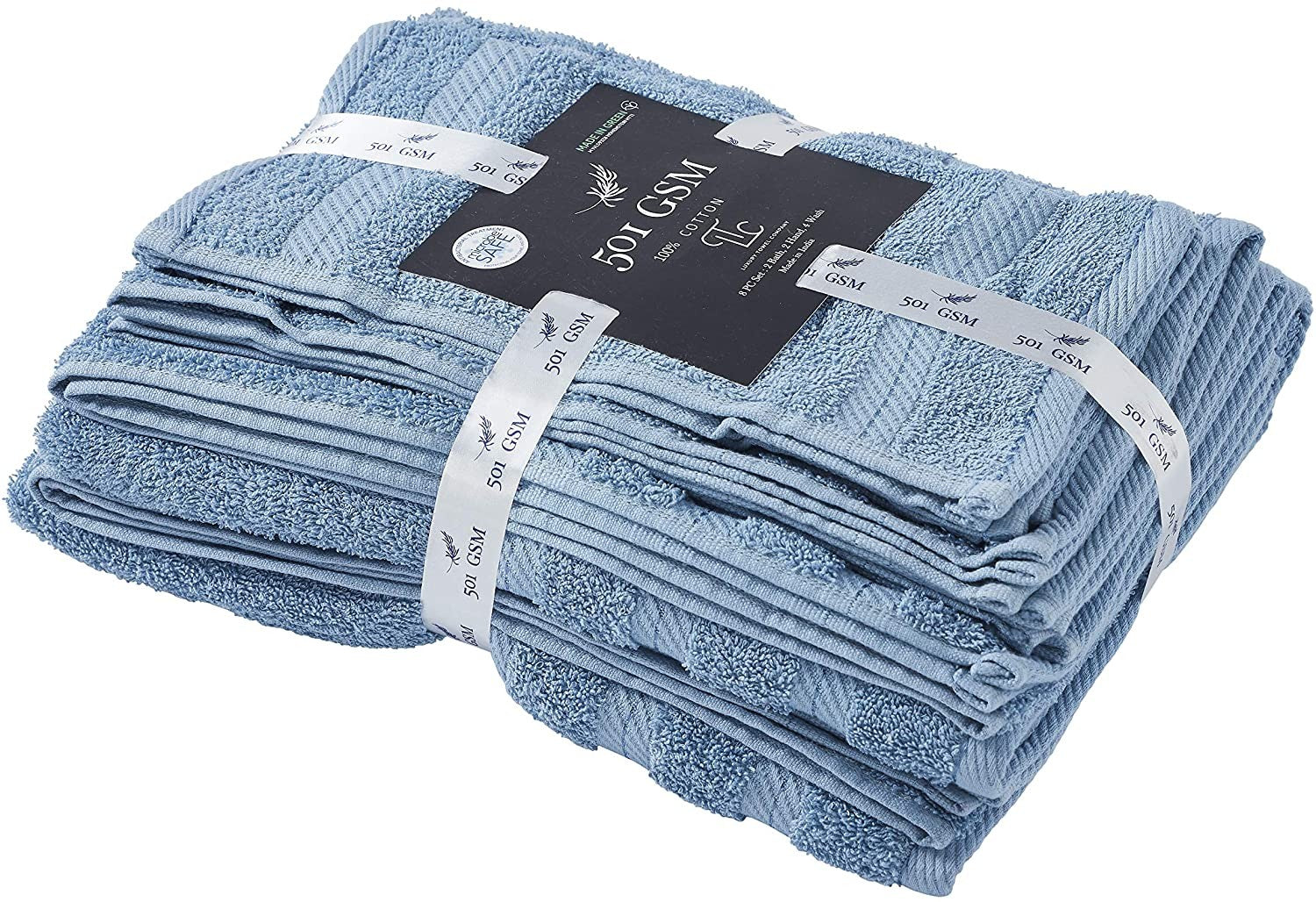 If you are looking for luxury at a bargain price, our classic cotton towels 501 GSM set is for you. These towels, made with 100% pure cotton, are lightweight, absorbent, and quick-drying. Durability is also guaranteed, with double-needle stitching, tightly twisted yarn, and fade-resistant dyes that keep color for 50 washes. Although this towel has a slightly rougher feel than our higher-end lines, it is made using the same high-quality materials and ethical practices, and we know that you will love the value that you get for your money.